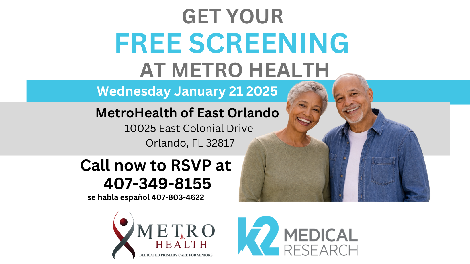 K2 Medical Research is coming to MetroHealth of East Orlando! Receive a complimentary brain health screening and learn about local research studies focused on memory, aging, and cognitive wellness.
