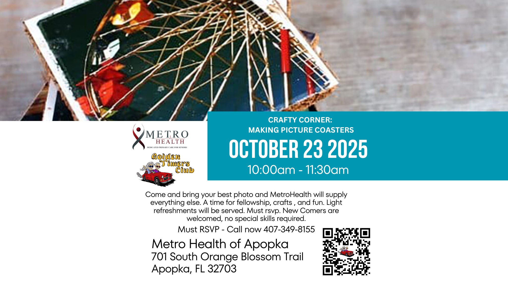 Bring your favorite photo and let’s turn it into a beautiful keepsake coaster at MetroHealth of Apopka! No experience needed—just a smile and a little creativity. 🌟