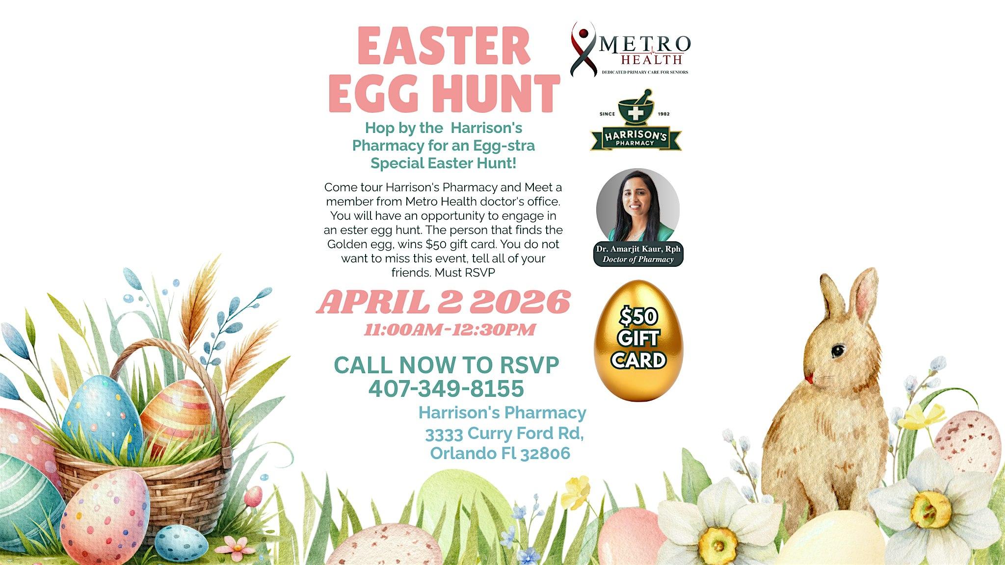Celebrate the season with an exciting Easter egg hunt, a chance to explore Harrison’s Pharmacy, and an opportunity to connect with a member of the Metro Health care team.