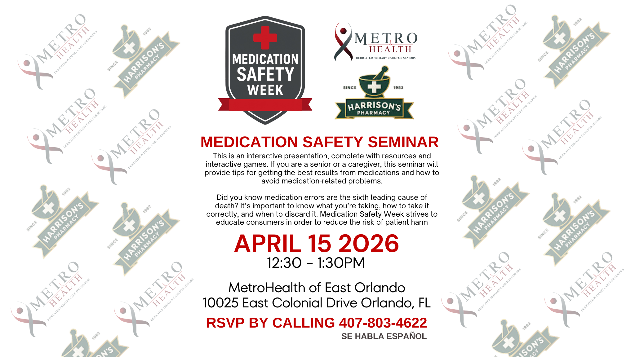 Join Metro Health Inc in partnership with Harrison’s Pharmacy for an engaging and educational seminar focused on safe medication use.