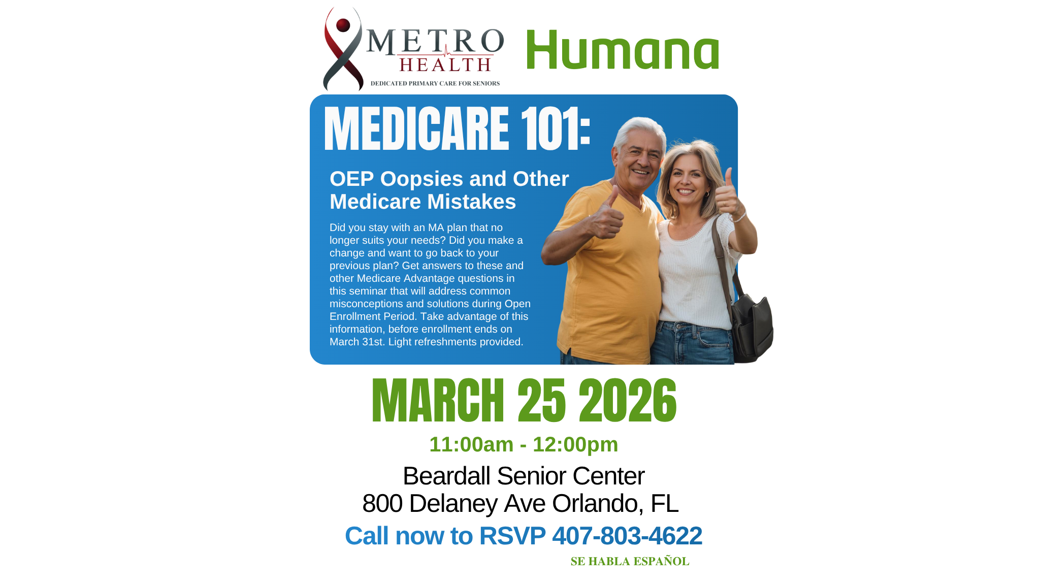 #Medicare101 #OpenEnrollment #SeniorCare #HealthEducation #MetroHealth #OrlandoEvents #MedicareHelp #HealthyAging #CommunityHealth