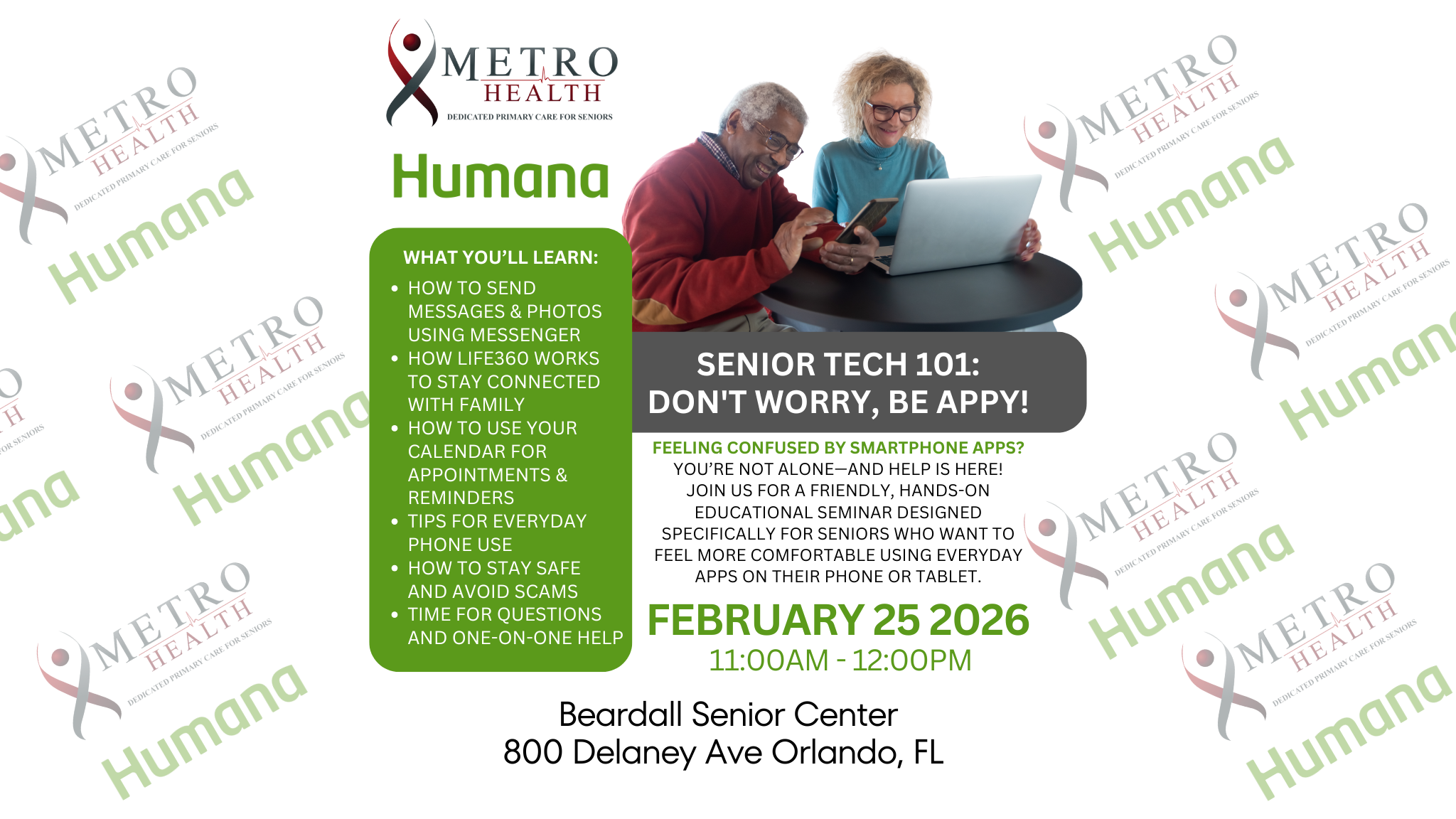 Feeling overwhelmed by smartphone apps or unsure how to use your phone beyond basic calls? You’re not alone. Senior Tech 101 is a hands-on, supportive seminar designed specifically for seniors who want to feel more comfortable and confident using everyday technology.